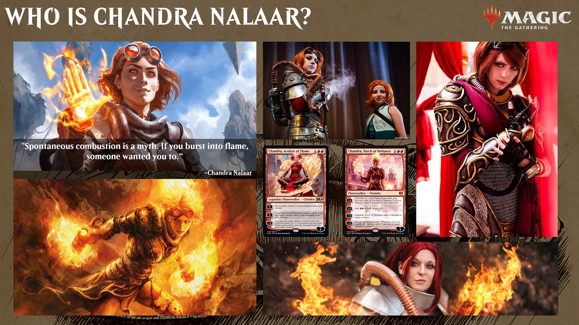 To help secure initial buy-in from the Wizard's of the Coast teams, rough sketches were styled to look like they came from the workbench of a Kaladesh artisan. The sketches helped the team at WOTC as they started to bring this character in the physical world for the first time.